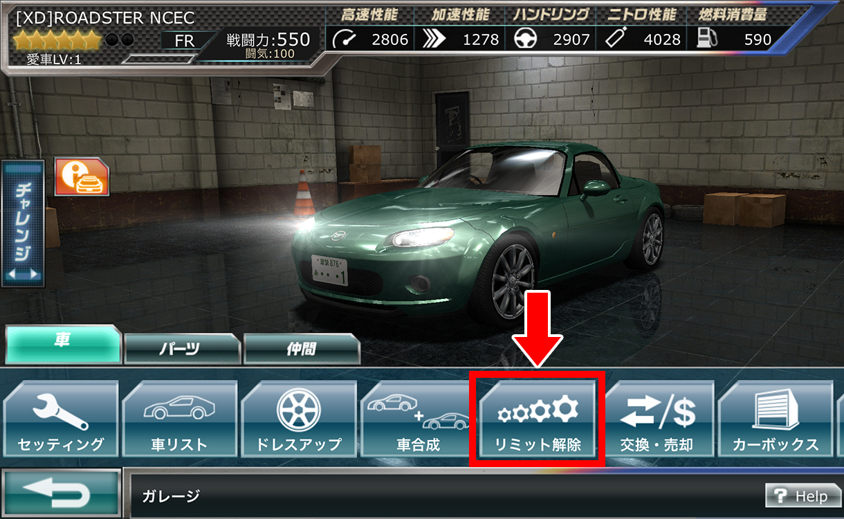該当車両を★8レアリティにグレードアップしたい場合、事前に「リミット解除」にて、
