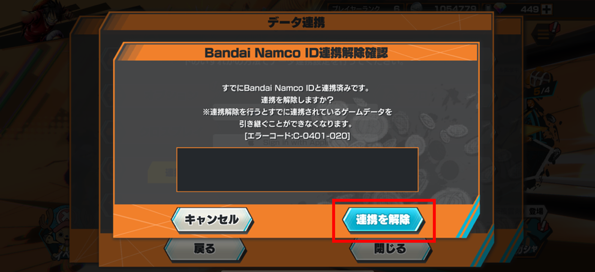 なお、連携済のバンダイナムコIDにログインできない場合、連携を解除することはできません。