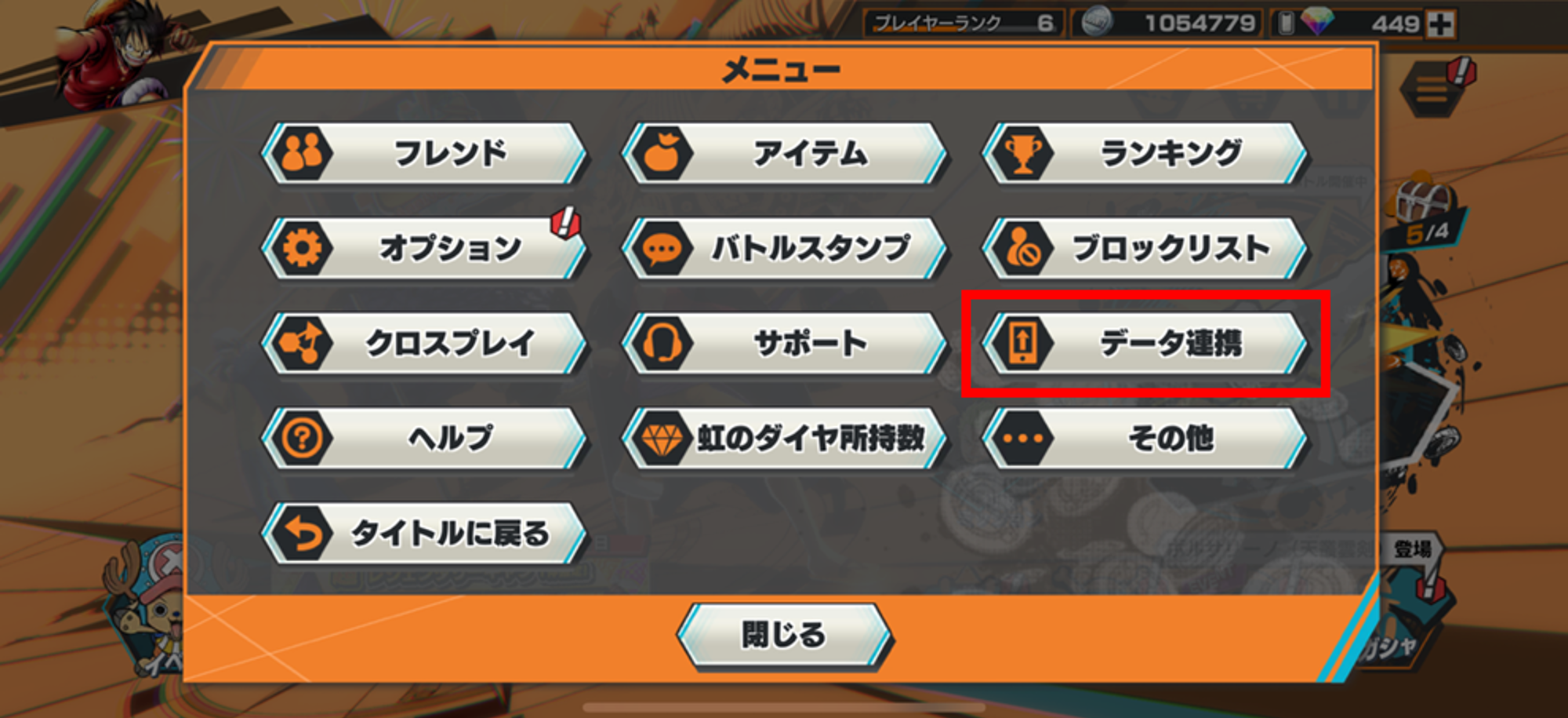 ②データ連携>Bandai Namco ID連携>バンダイナムコIDログインをタップ