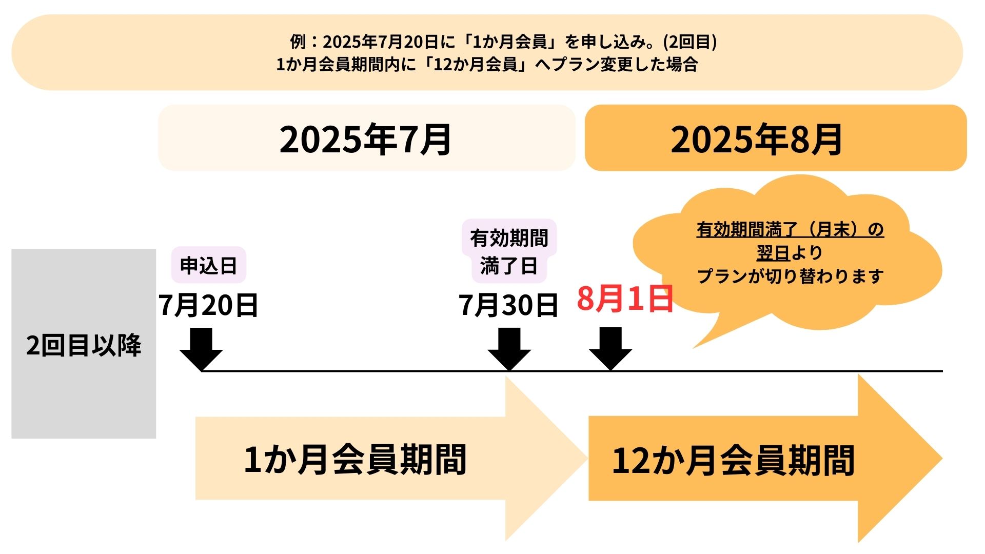 会員プランを変更した場合、いつから切り替わりますか?※1か月会員(2回目)→12か月会員変更時