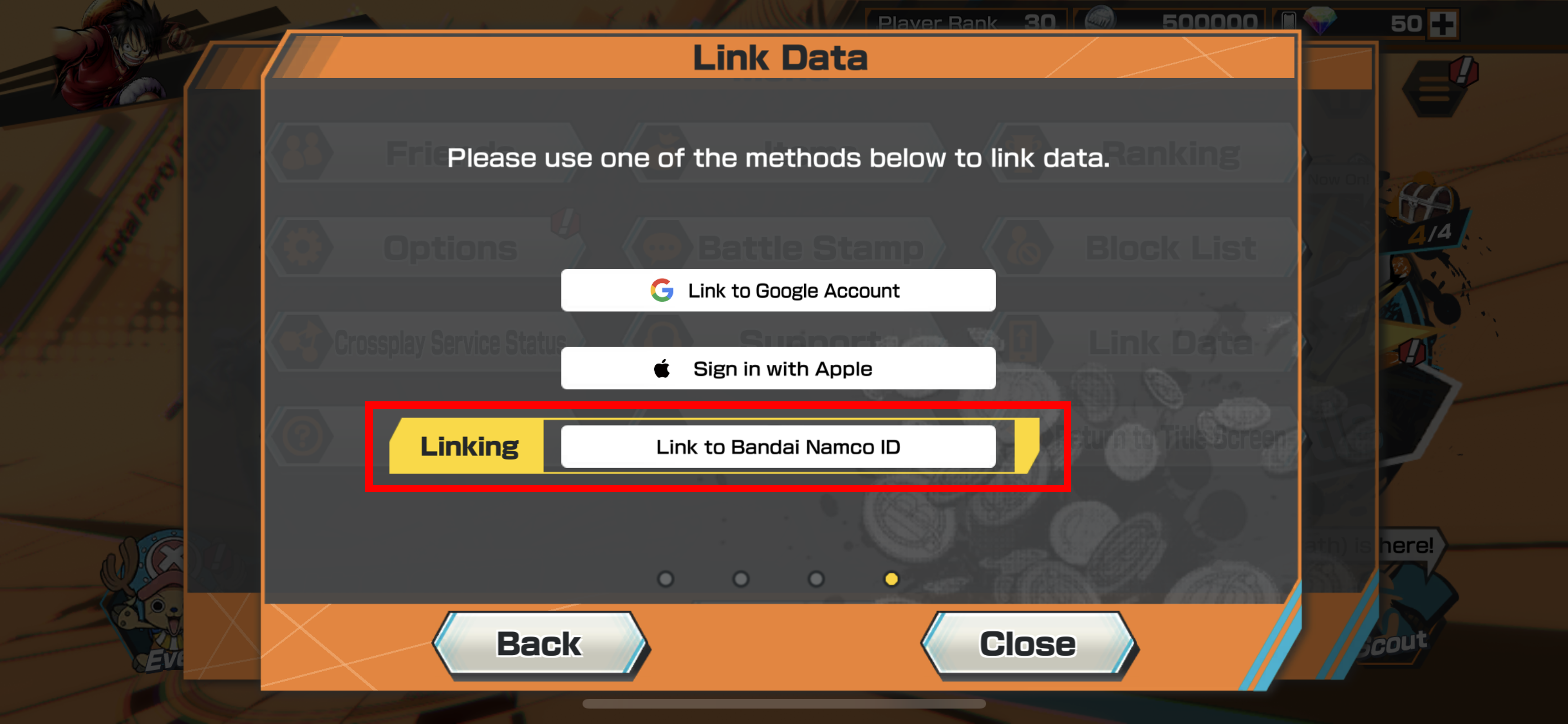 If "Link to Bandai Namco ID" has been enabled, the following screen will appear.